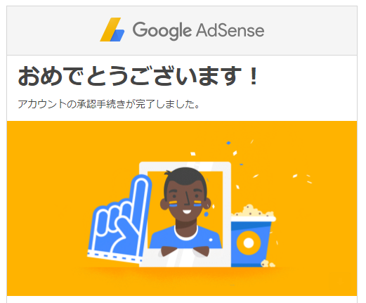 このブログのアドセンス審査の申込みをしたら、4時間後に合格通知の「ポップコーン画像」が来ました。審査申込みをしてから合格まではいろいろと紆余曲折があると覚悟していたので、拍子抜けしました。