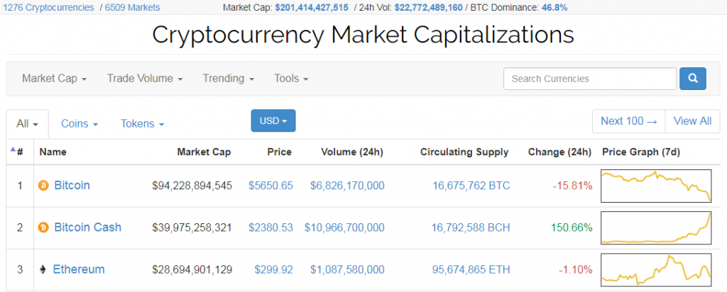 ビットコインキャッシュ(BCH)が急騰して、時価総額でイーサリアムを超えて2位に浮上しました。1週間ぐらい前からビットコインキャッシュがじわじわ上がってきていましたが、今日一気にイーサリアムを超えるとは驚きのスピードです。もっとジワジワ上がるのかと思っていました。時価総額1位の本家ビットコイン(BTC)とはまだ3~4倍程度の差があります。