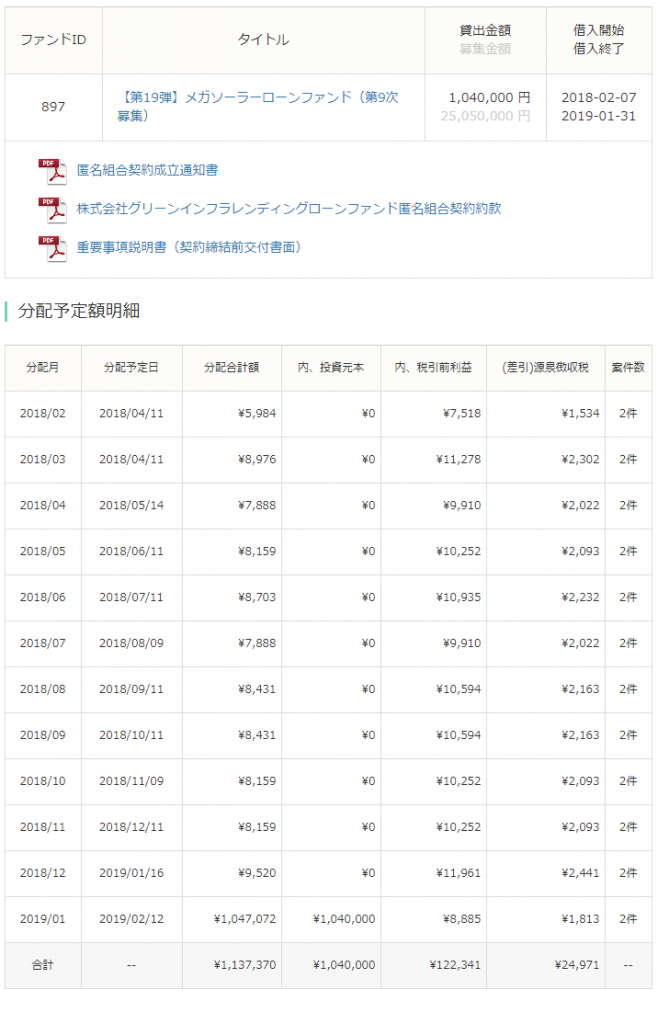 それでは、グリーンインフラレンディングに関する私の投資体験談として、投資実績を公開します。