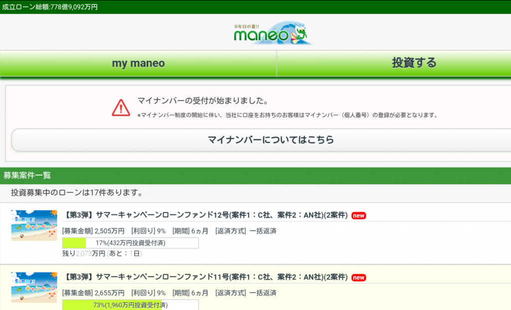 それでは、マネオに関する、私の投資体験談として、投資実績を公開します。