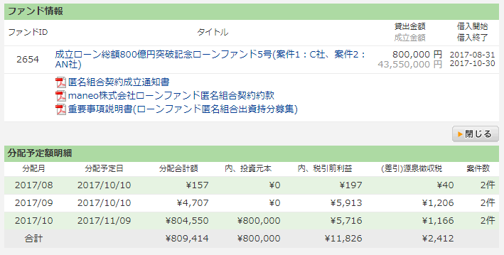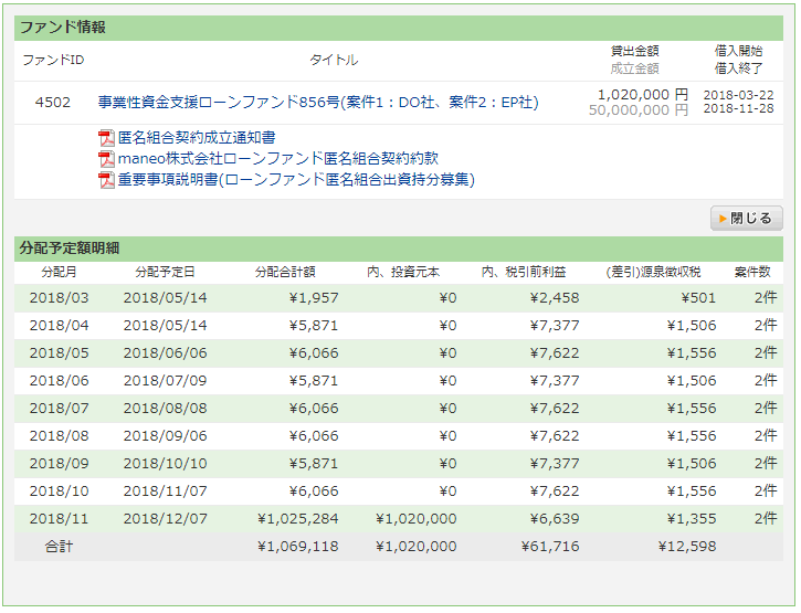 【投資実績】マネオ編 その5:(再投資) 利息1万円を追加して102万円を不動産開発事業のファンドへ再投資