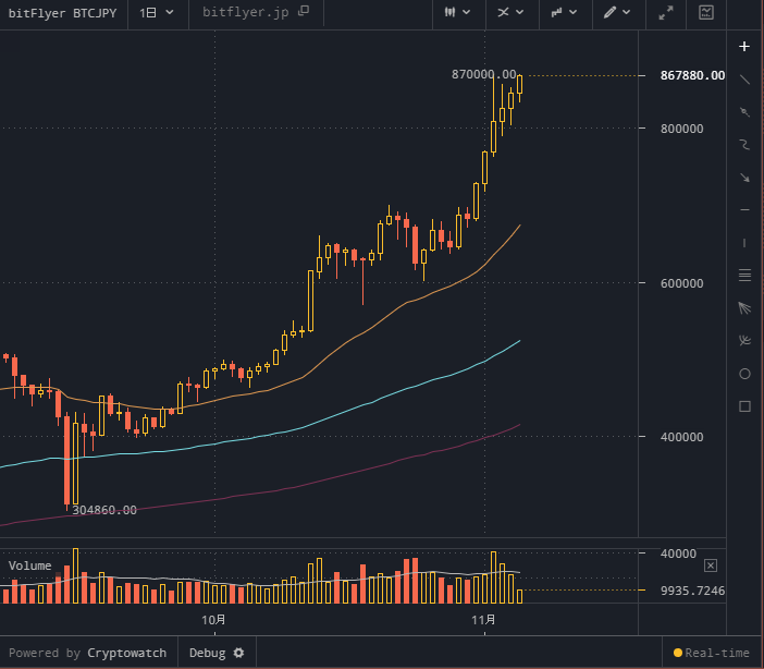 分岐までまだ11日もあるのにビットコインは高値更新87万円付近!