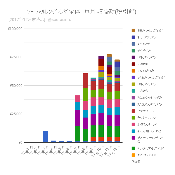 【実績公開】ソーシャルレンディング全体編 月報:12月の収益は約7万円(1,262万円を16社の22案件に分散投資)