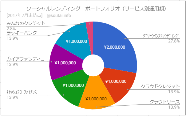 現在のポートフォリオ;720万円を7社の9案件に分散投資