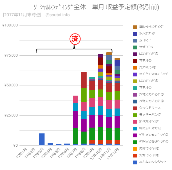 【実績公開】ソーシャルレンディング全体編 月報:11月の収益は約7万円(1,219万円を16社の24案件に分散投資)