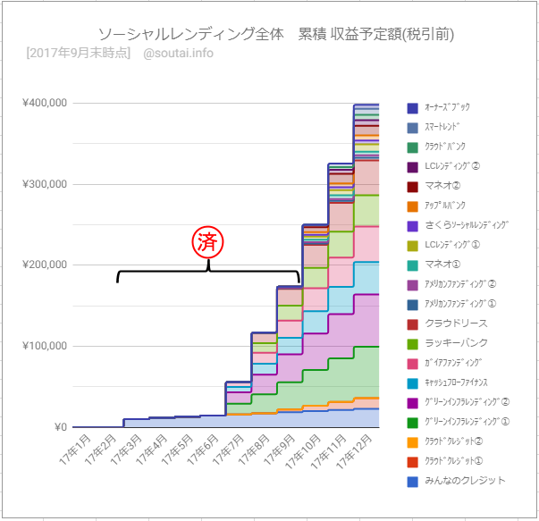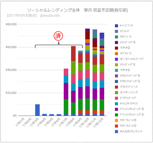 【投資実績公開】ソーシャルレンディング全体編 月報:9月の収益は約5万円(1,130万円を15社の20案件に分散投資)