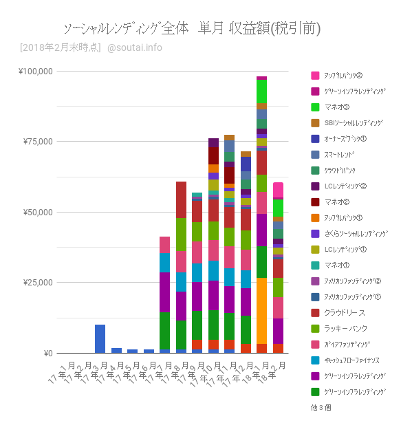 【実績まとめ】ソーシャルレンディング全体編 月報:2月の収益は約6万円(1,383万円を17社の23案件に分散投資)