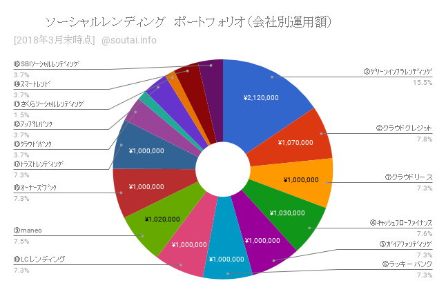 みんなのクレジットの案件(現在の投資額合計の約2%)については、これを教訓に今後はさらに分散投資を推進してリスク低減を図っていきたいと思います。